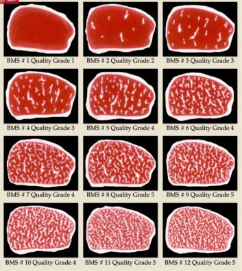 Der Beef Marbling Score beschreibt den Grad des intramuskulären Fettgehaltes mittels einer Scala. Dabei sind die Messmethoden aus Japan gänzlich unterschiedlich zu denen aus Australien.