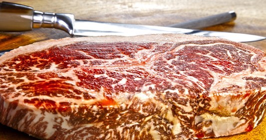 Die feine Fettverteilung im gesamten Muskelfleisch des Rindes, die das Fleisch mit einem tiefen Aroma versorgt, ist entscheidend für den